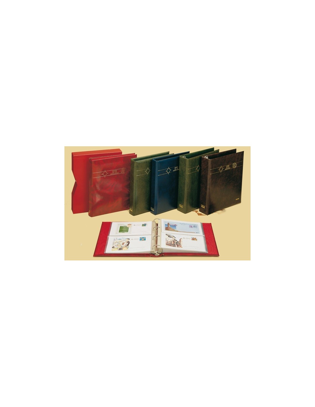 Álbum para hojas intercambiables ideales para coleccionar Sobres Primer Día, Enteros Postales, Tarjetas, Cartas, Fotografías, etc. Con Capacidad para 40 hojas.