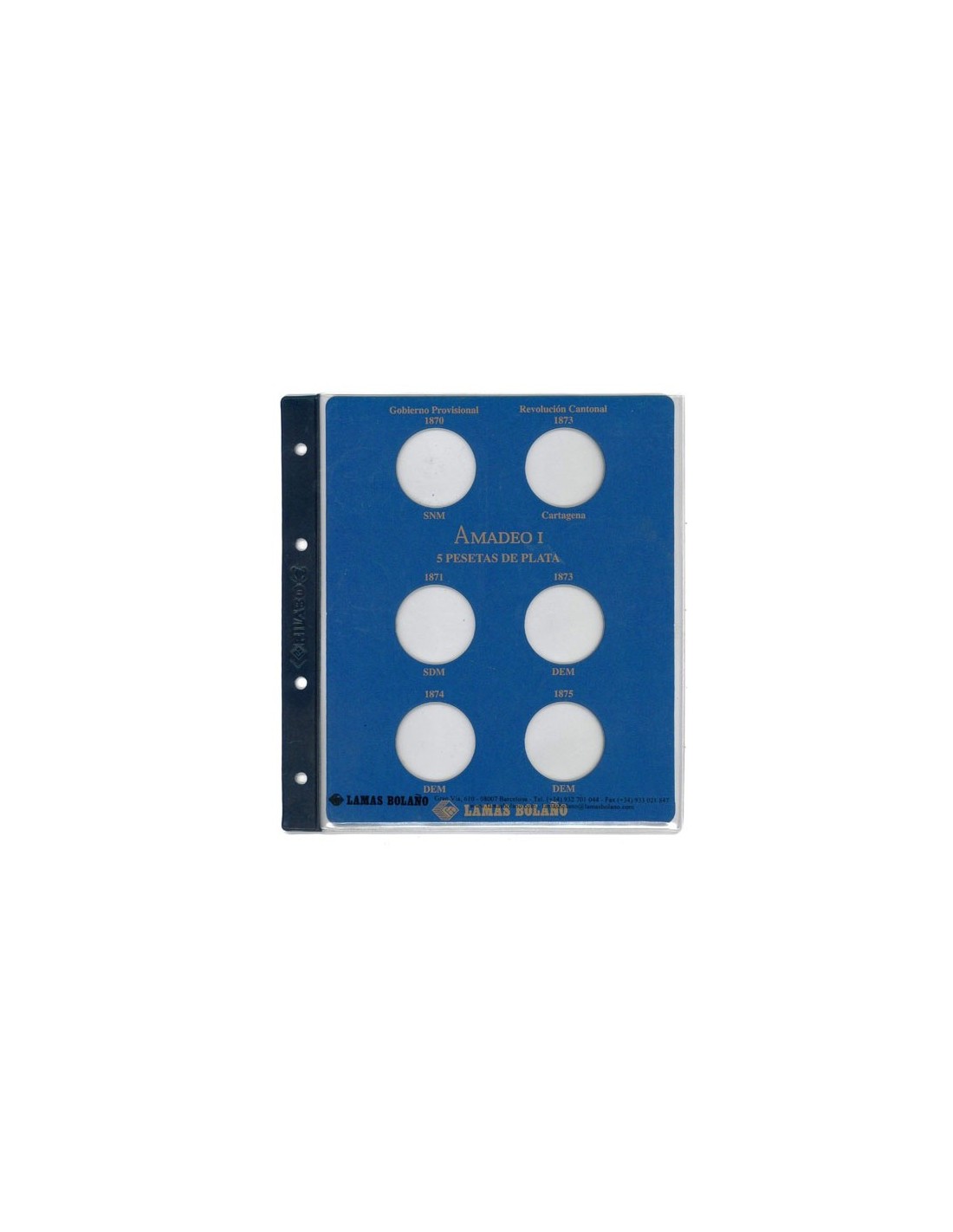 Hojas y fichas técnicas para colocar las monedas de 5 Pesetas del Reinado de Amadeo I:
